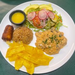DESCRIPCIÓN Un clásico del corazón del chocoano. Arroz salteado con vegetales, queso costeño, carne de cerdo y la famosa longaniza chocoana, un plato lleno de tradición y sabor. Se acompaña con patacones.$ 22.000*Producto disponible SOLO DÍAS SÁBADOS.